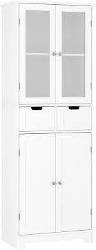 Detta badrumsskåp är utformat för att maximera din förvaringskapacitet. De fyra dörrarna ger enkel åtkomst till dina toalettartiklar, medan de två lådorna är perfekta för mindre föremål som smink och accessoarer. Håll ditt badrum organiserat och fritt från oreda!